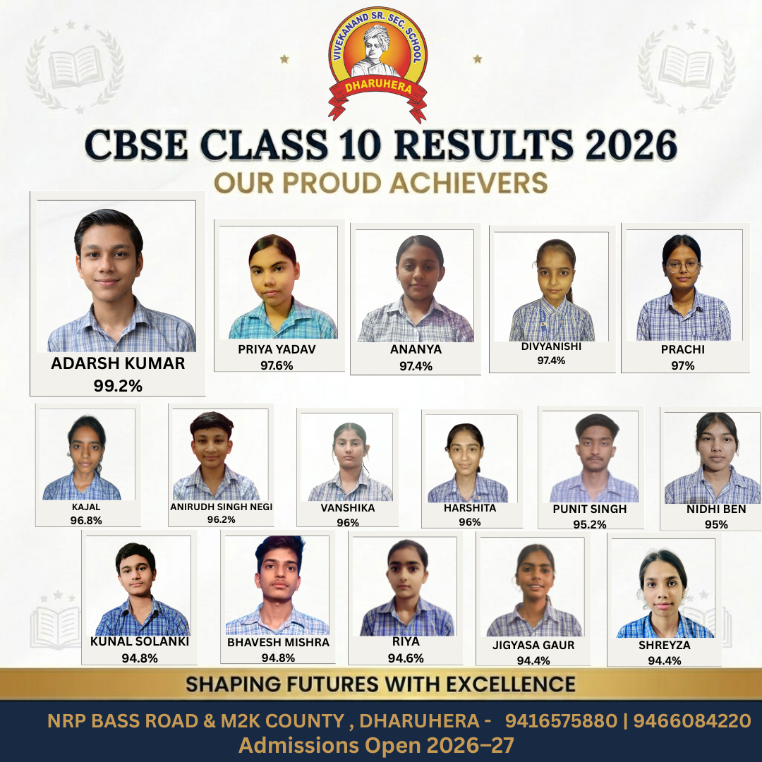 Vivekanand School is situated on NRP Bass Road and M2K County in Dharuhera, Rewari, Haryana 123106, and was established in 1996. Over the last 30 years, the school has successfully graduated 28 batches. Our mission is to make the school a guiding light for the community, focusing on quality as a key to improvement. It is crucial for educational institutions to offer students various chances to chase their dreams and grow personally with dedication and enthusiasm.